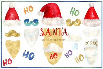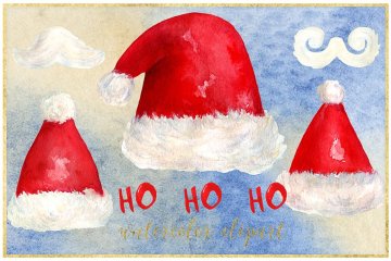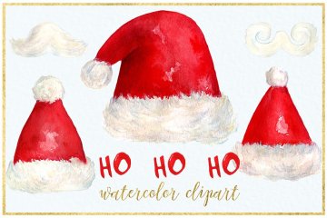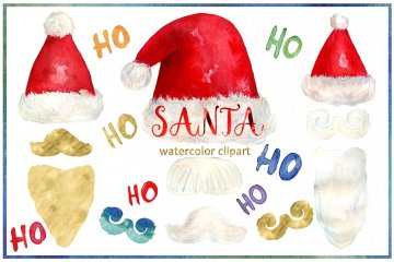 图穷联素材库 » 圣诞老人水彩单品 Santa hat. Christmas