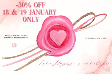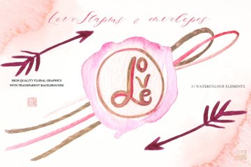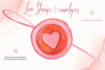 浪漫而温柔的爱情心形元素印章插画 Love stamps e