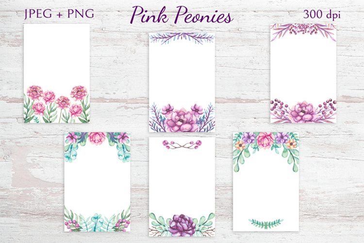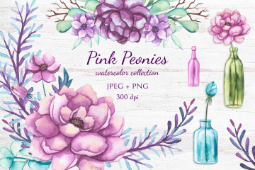 这是鲜艳的花卉系列,有牡丹,树叶和彩色瓶子。包括高分辨率水彩牡丹花,叶子,花圈,无缝模式,卡模板和边框。这适用于婚礼请柬,卡片,徽标,包装设计等。