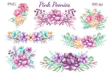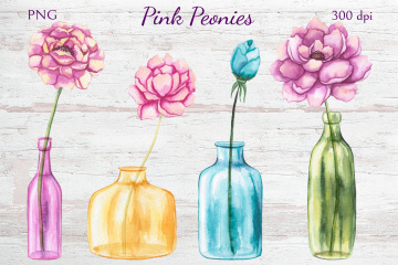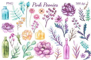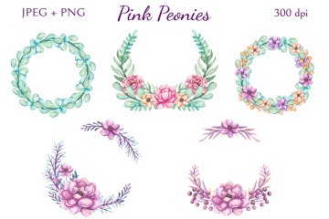 高分辨率粉色牡丹花卉剪贴画系列合集 Pink Peonies