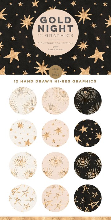 图穷联素材库 » 手绘金色星空元素 Gold Nights Hand Draw