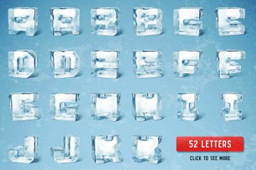 3D冰莹剔透冰块字母字体 Set of Ice Cube l
