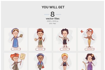 图穷联素材库 » 8张国外历史上伟大女性矢量插画打包下载Great Women