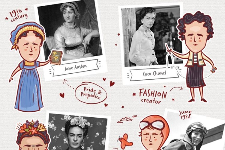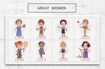 8张国外历史上伟大女性矢量插画打包下载Great Women