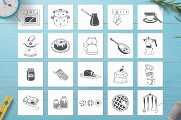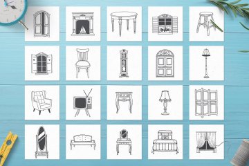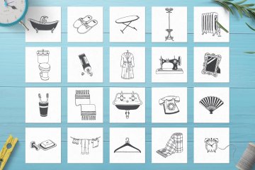 图穷联素材库 » 100个手绘家居用品的矢量图形素材下载100 Hand Dr