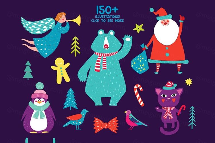 图穷联素材库 » 欢乐时光可爱手绘圣诞元素合集 MERRY BRIGHT