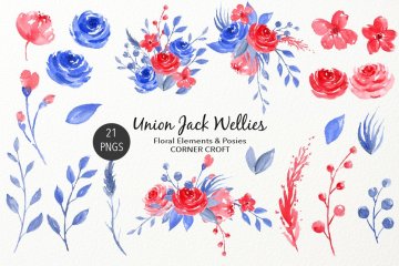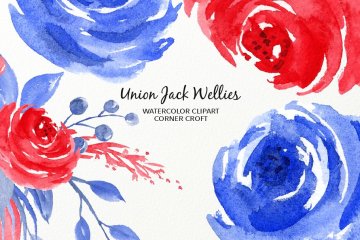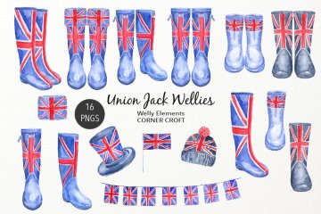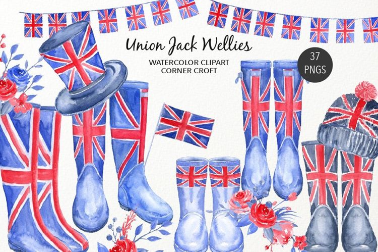 图穷联素材库 » 水彩英国国旗雨靴插图 Watercolour Union J