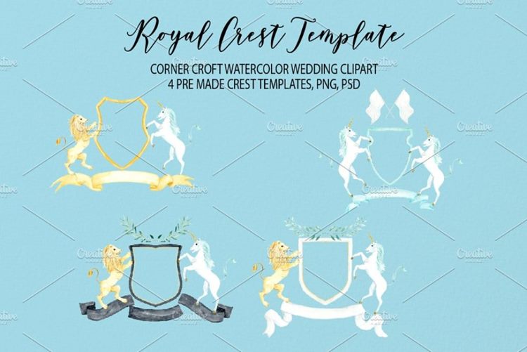 图穷联素材库 » 水彩皇家婚礼徽章剪贴画 Watercolor Royal C