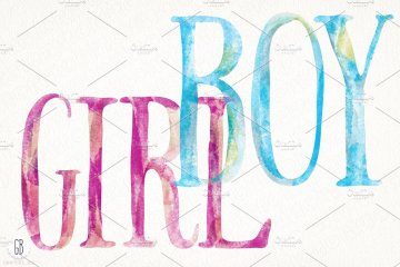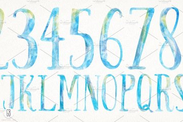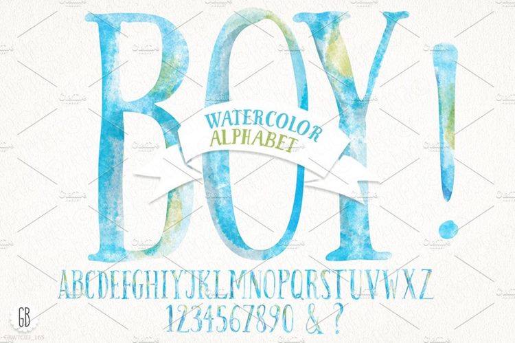 图穷联素材库 » 手绘的天空蓝色水彩字母 Watercolor baby bo