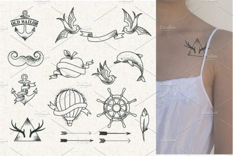 图穷联素材库 » 时尚风格纹身矢量图形 Hipster Style Tatto