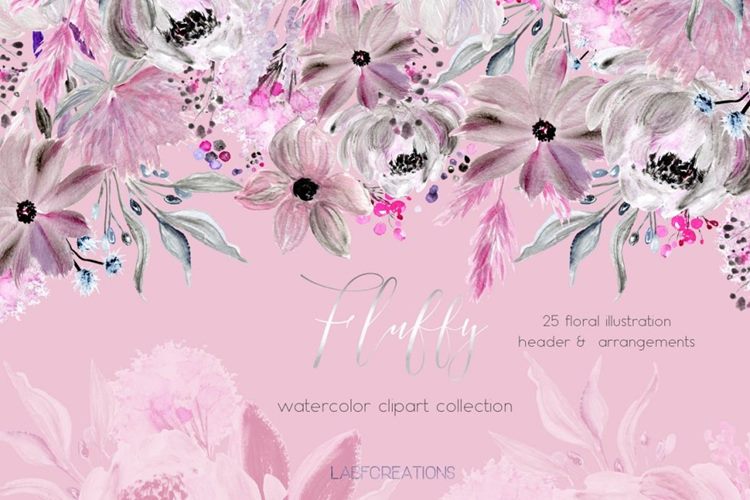 图穷联素材库 » 毛茸茸的水彩花卉元素 Fluffy Watercolor f