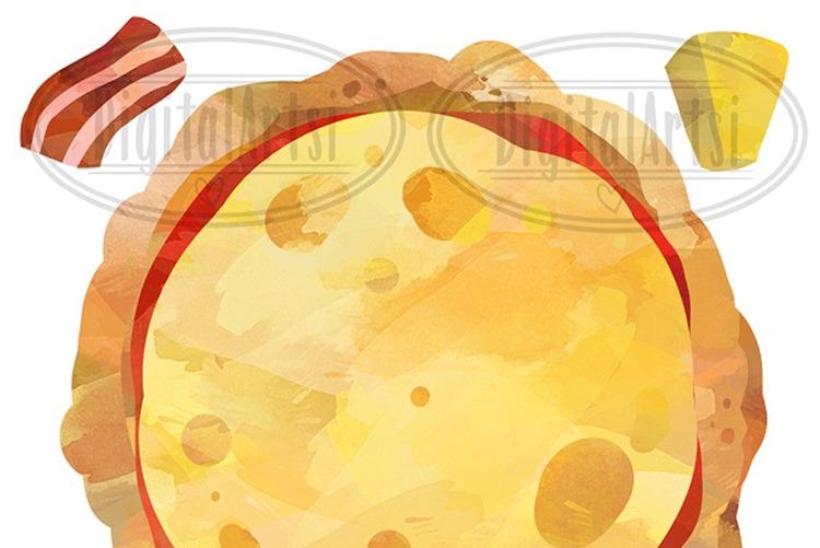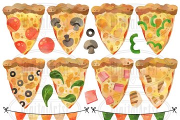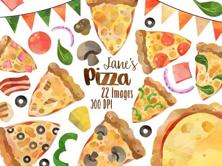 图穷联素材库 » 手工绘制的水彩污渍披萨插图合集 Pizza watercol