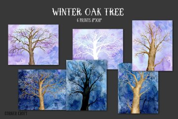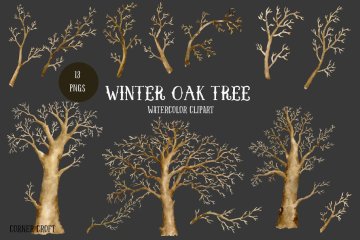 图穷联素材库 » 手绘水彩艺术栎树剪贴画 Watercolor Winter