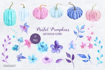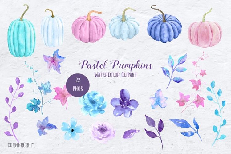 图穷联素材库 » 水彩彩色南瓜剪贴画 Watercolor Pastel Pu