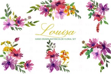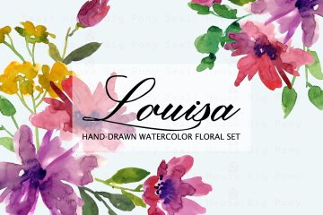 手绘水彩花卉剪贴画 Louisa - Watercolor