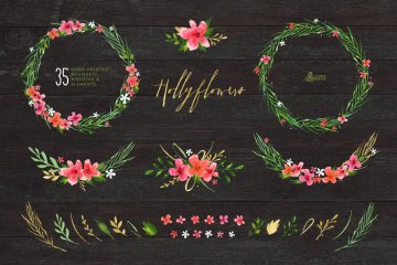 图穷联素材库 » 高质量手绘水彩花束剪贴画 Hollyflowers Hol