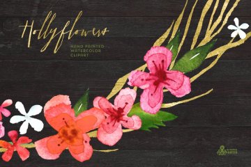 高质量手绘水彩花束剪贴画 Hollyflowers Hol