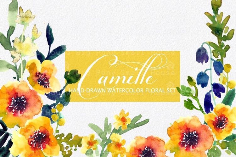 图穷联素材库 » 水彩阳光暖黄色花卉素材 Camille Watercolo