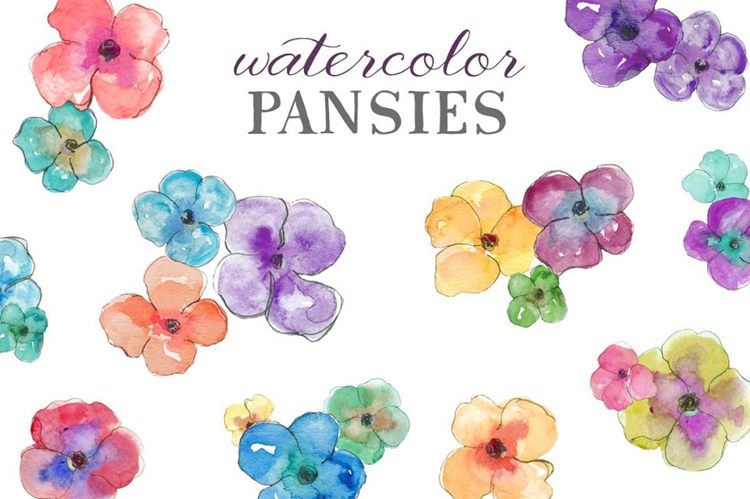 漂亮的手绘水彩三色紫罗兰插画素材 Watercolor Pa