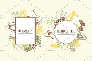 图穷联素材库 » 老式凉茶草药成分矢量插图合集 Vector Herbal T