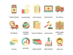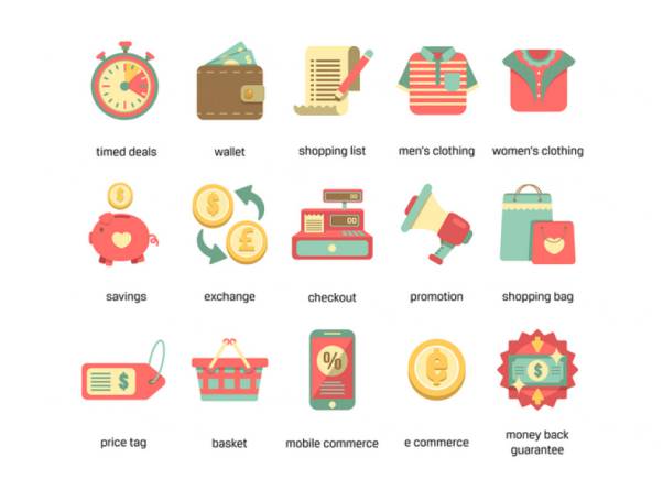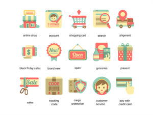 图穷联素材库 » 80个复古风格电子商务零售购物物流运输矢量图标集E-Commerce Retro