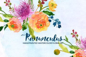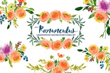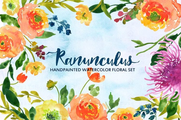 水彩手绘毛茛植物剪贴画 Ranunculus Waterco