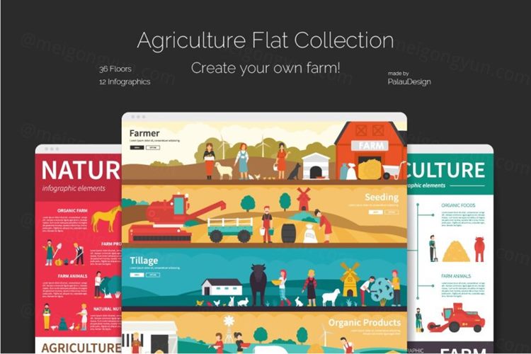 图穷联素材库 » 农业主题农场场景插画合集 Agriculture Flat