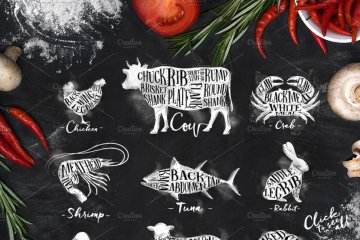 极力推荐:生鲜肉类切割图表海报等设计素材合集 Cutting