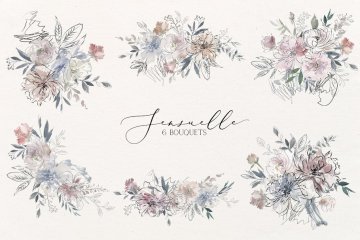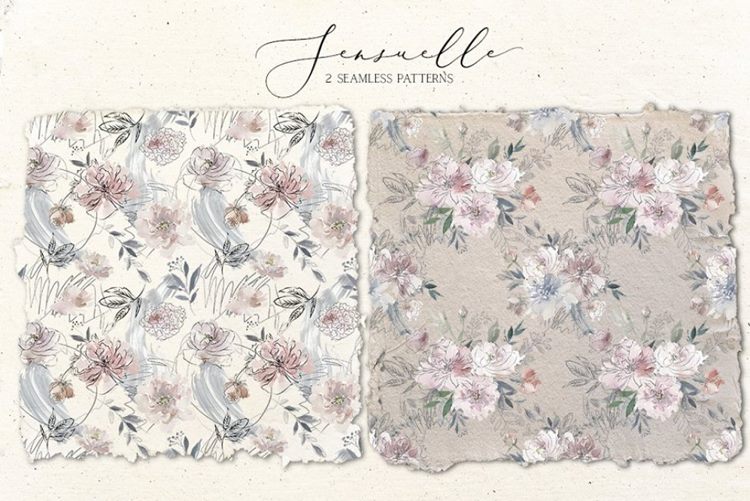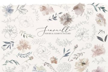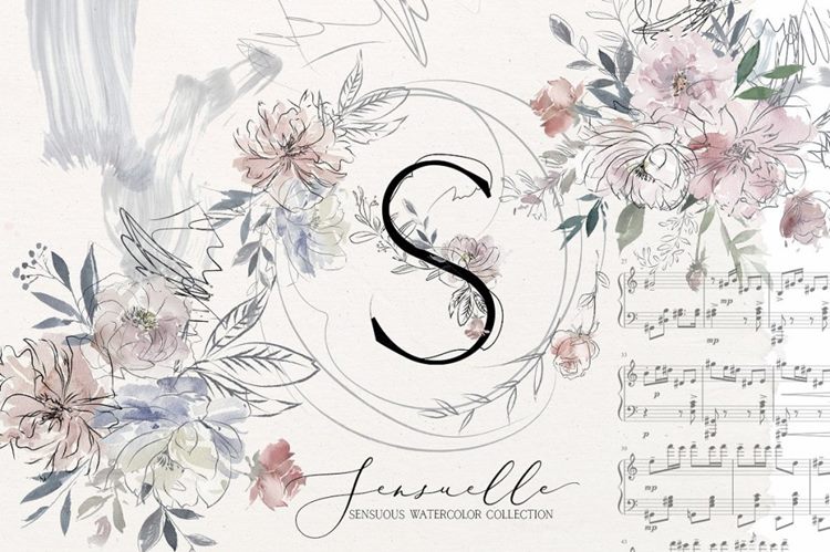 线条性感水彩花卉剪贴画字体 Sensuale Waterco