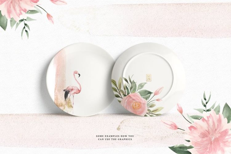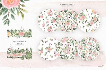 图穷联素材库 » 火烈鸟与鲜花矢量水彩插画 Watercolor Flamin