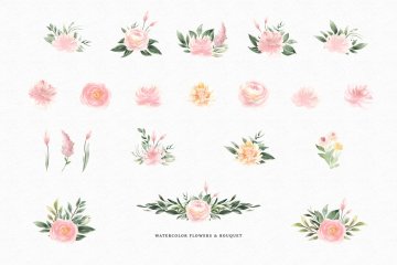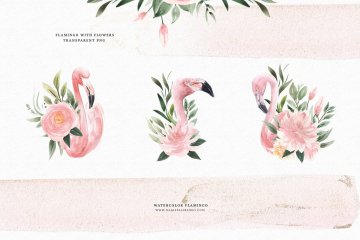 火烈鸟与鲜花矢量水彩插画 Watercolor Flamin