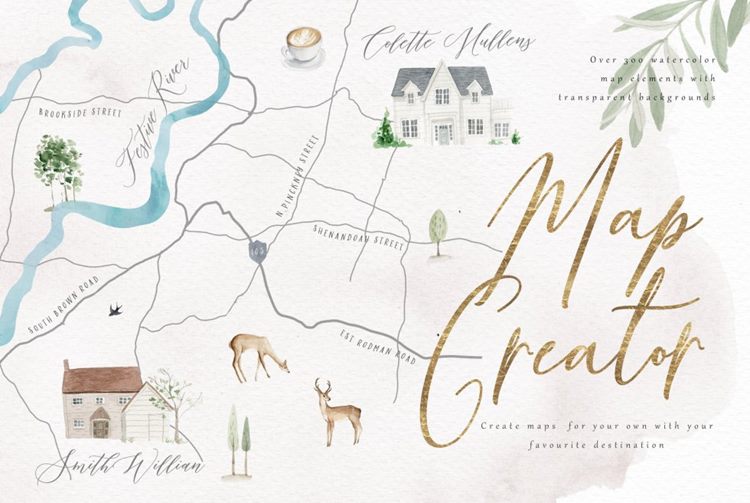 水彩手绘简易地图插画素材 Map Creator