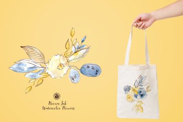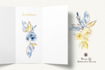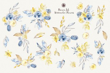 棕色油墨手绘水彩花卉元素 Brown Ink Waterco