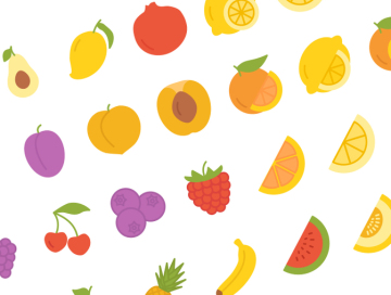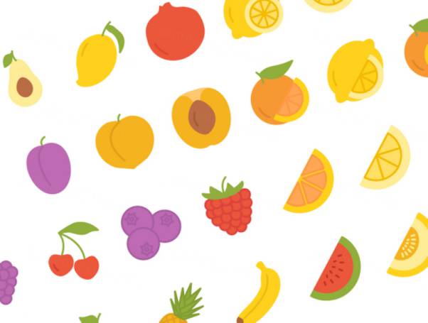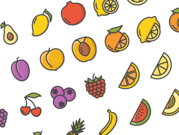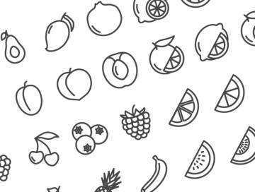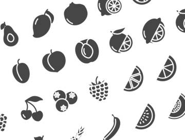 图穷联素材库 » 112种多风格水果苹果橘子石榴菠萝草莓甜瓜香蕉葡萄矢量图标集Fruits Ico