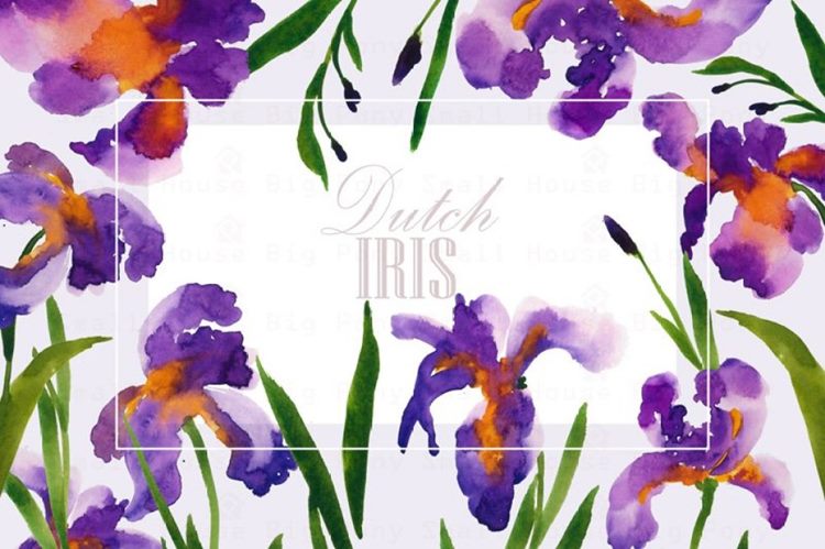 图穷联素材库 » 荷兰鸢尾花卉水彩艺术剪贴画 Dutch Iris Water
