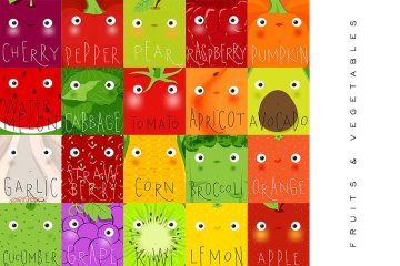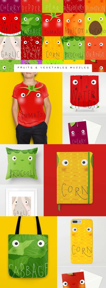 图穷联素材库 » 可爱卡通风水果蔬菜插画合集 Fruits Vegetabl