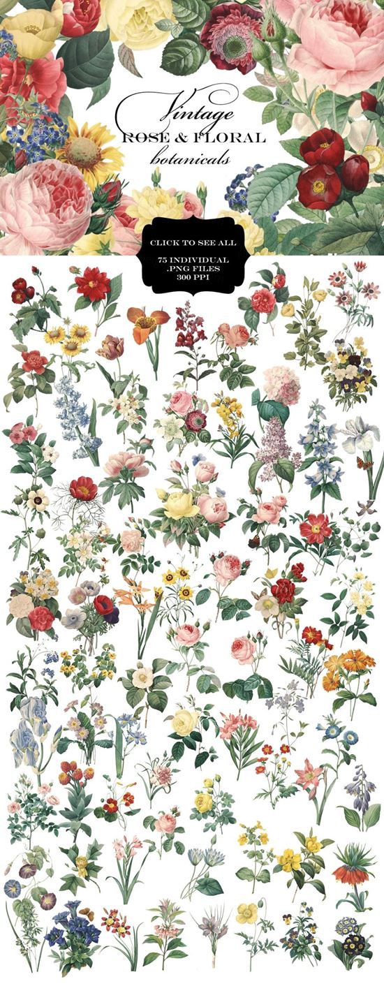 图穷联素材库 » 复古玫瑰花卉植物剪贴画 Vintage Rose Flor