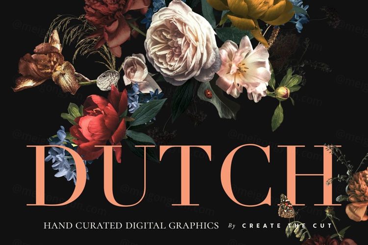 图穷联素材库 » 传统色彩荷兰花卉剪贴画 Vintage Floral Cli