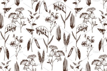 图穷联素材库 » 老式矢量农场植物插图 Vector Farm Plants
