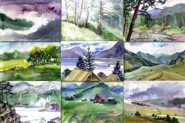 18张明亮的水彩风景高清大图下载Watercolor Mou