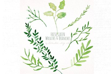 新鲜淡绿色手绘树枝花环剪贴画合集 Fresh green b