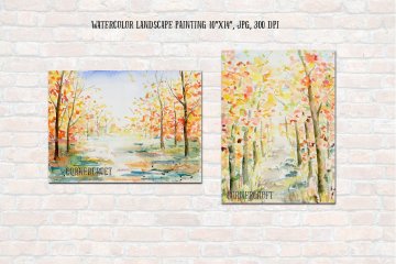 图穷联素材库 » 手绘水彩秋天山水景观背景 Watercolor Landsc