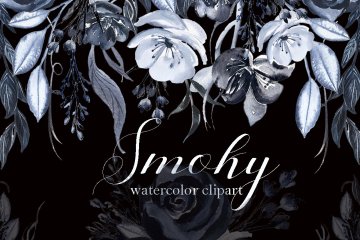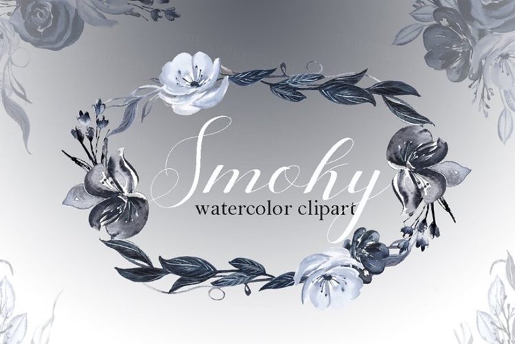 图穷联素材库 » 烟熏黑灰色水彩插花艺术图案 Smoky Black grey