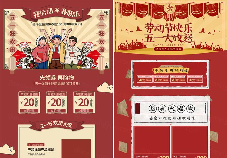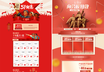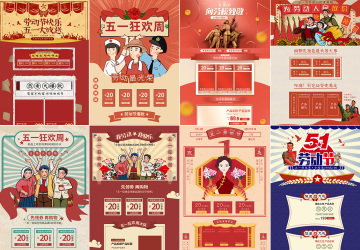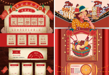 图穷联素材库 » 12款五一劳动节红色复古中国风淘宝电商首页51活动专题页PS