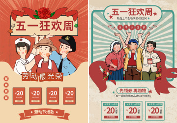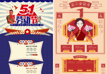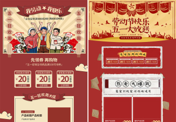 12款五一劳动节红色复古中国风淘宝电商首页51活动专题页PS