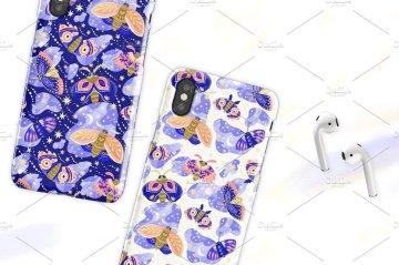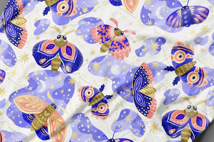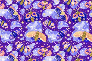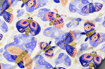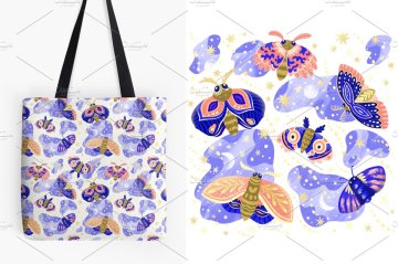 该套餐包括明亮的无缝图案,镶有蛾子和夜蝴蝶的贴纸。