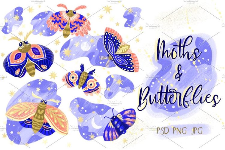 美丽的飞蛾蝴蝶水彩剪贴画图案贴纸素材 Beautiful M