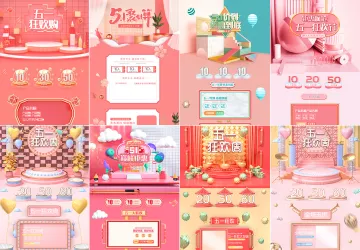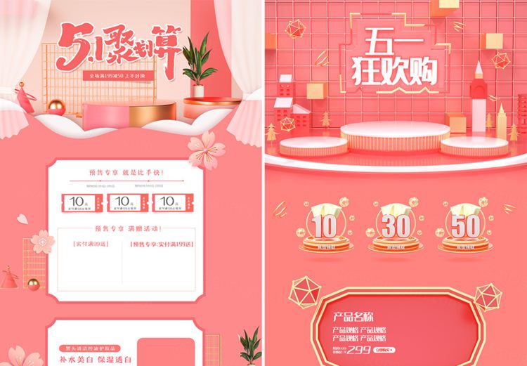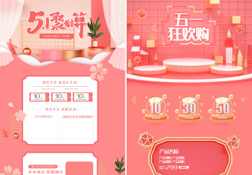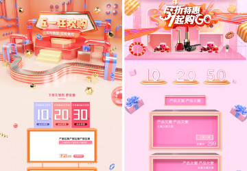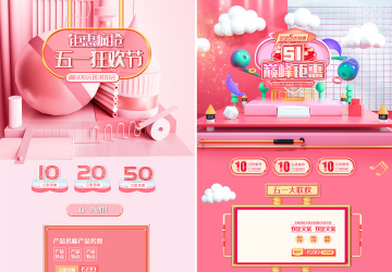 图穷联素材库 » 10款C4D粉金五一劳动节51狂欢周电商天猫淘宝首页活动专题