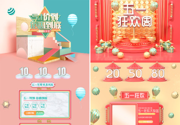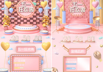 10款C4D粉金五一劳动节51狂欢周电商天猫淘宝首页活动专题