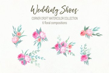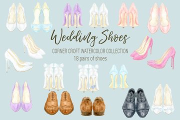 手工绘制水彩鞋婚礼元素合集 Watercolor weddi